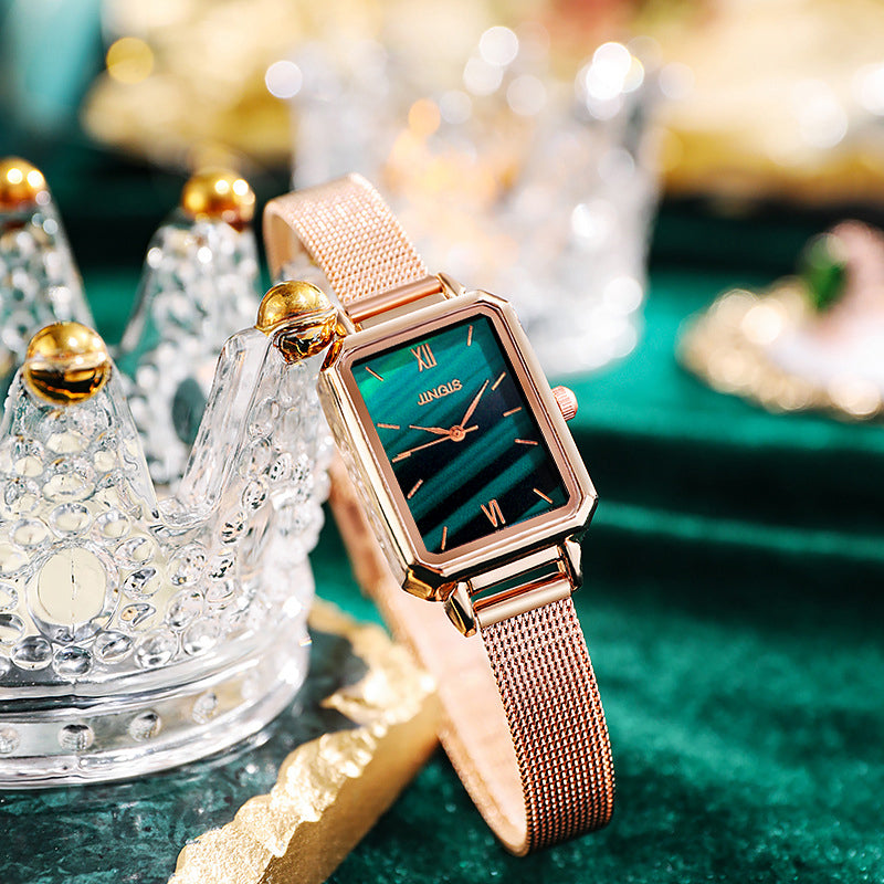 Ladies Vintage Malachite Textured Small Square Plate Small Green Watch