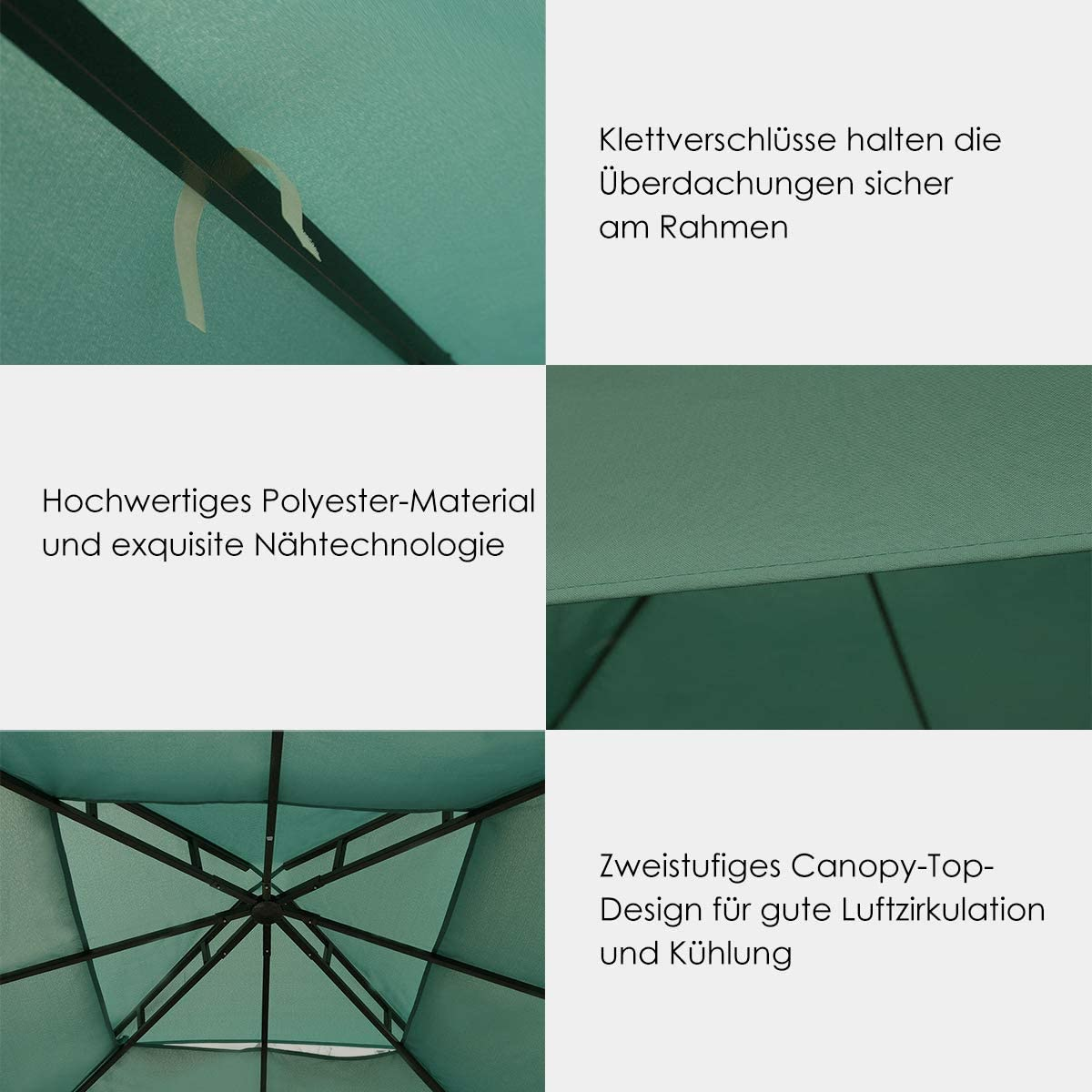 Ersatz-Oberabdeckung 300 x 300 cm Terrassenüberdachung für Doppelstöckigen Pavillon Dunkelgrün€73,99