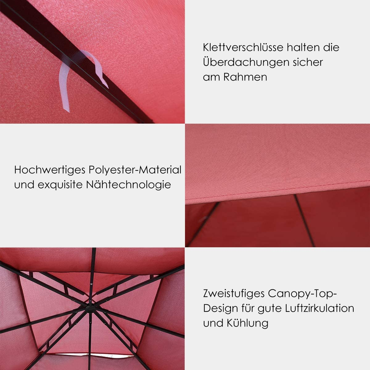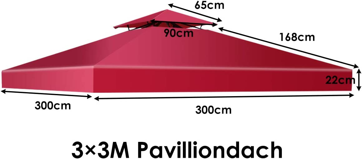 Ersatz-Oberabdeckung 300 x 300 cm Terrassenüberdachung für Doppelstöckigen Pavillon Wein€73,99