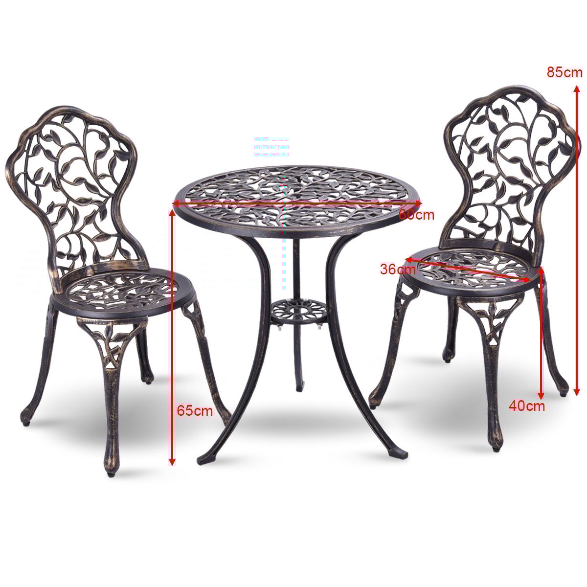 3 tlg Antik Aluminiumguss Bistroset Balkonset Sitzgruppe Gartentisch mit 2 Stühle Schwarz€175,99