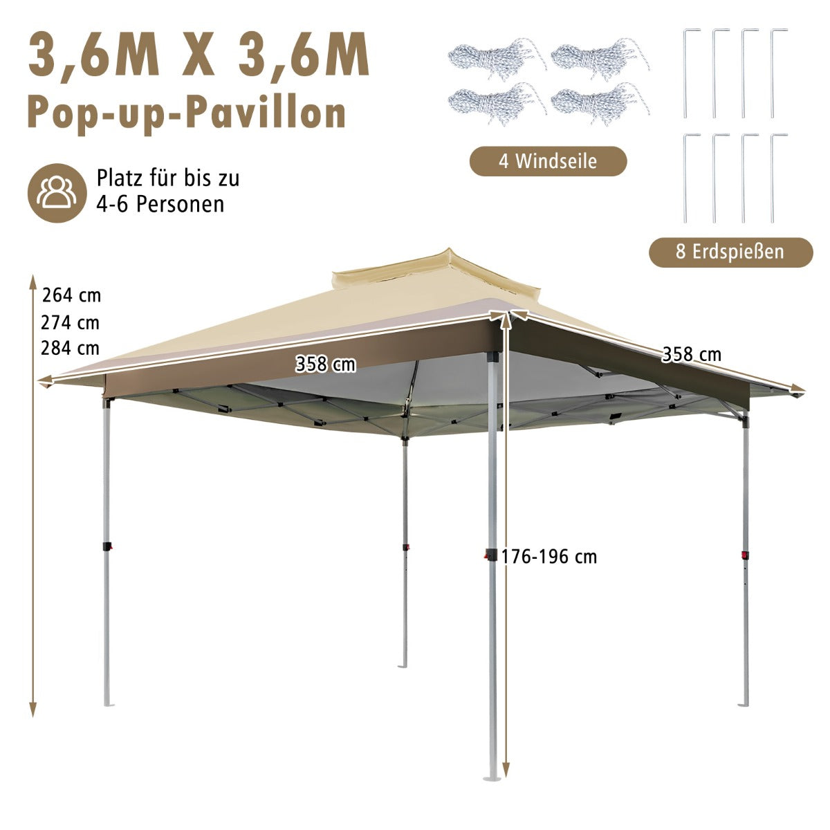 3,6 x 3,6m Pavillon mit Doppeldach wasserdicht stabil Winterfest UV-Schutz 50+€145,99