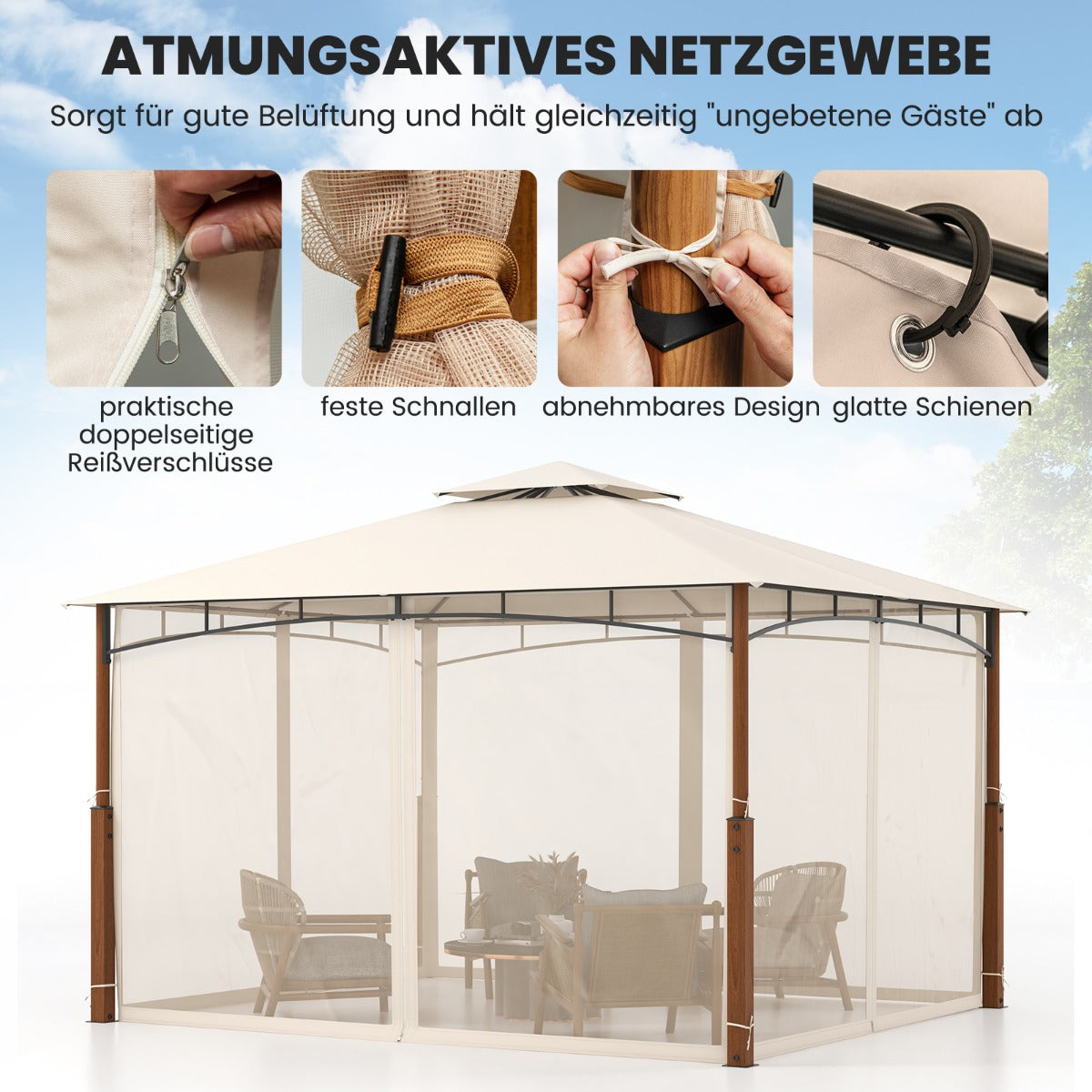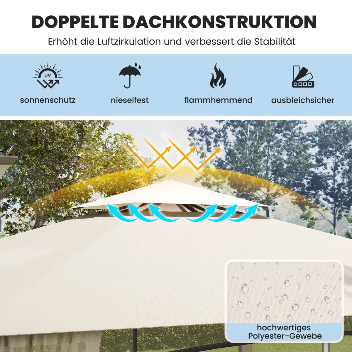3,6 x 3 m Pavillon mit Doppeldach & Moskitonetz Wasserdichtes Partyzelt Gartenpavillon€365,99