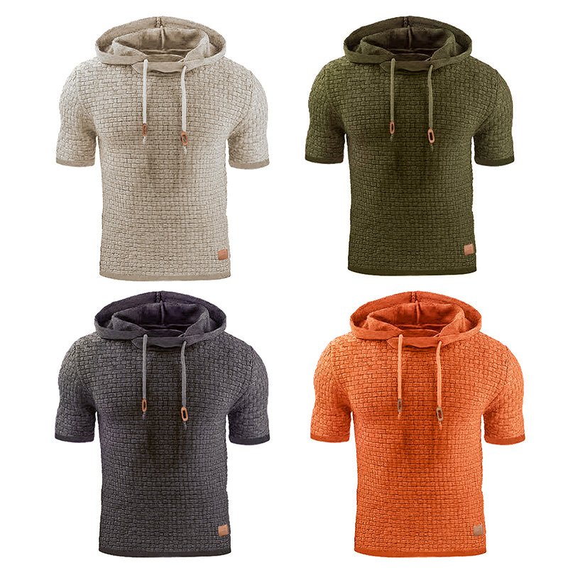 Mens Hooded Sweatshirt Short Sleeve Solid Knitted Hoodie Pullover Sweater€29,95