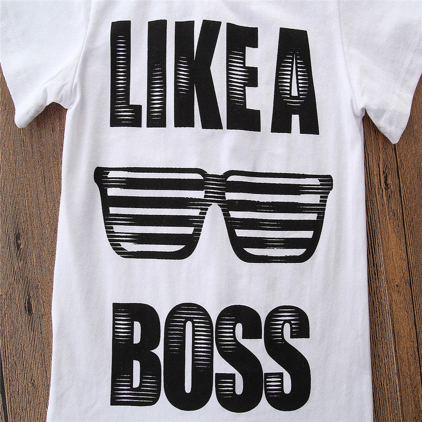 Zweiteiliges Set mit kurzärmligen Jeansshorts mit Buchstaben für Jungen€24,95