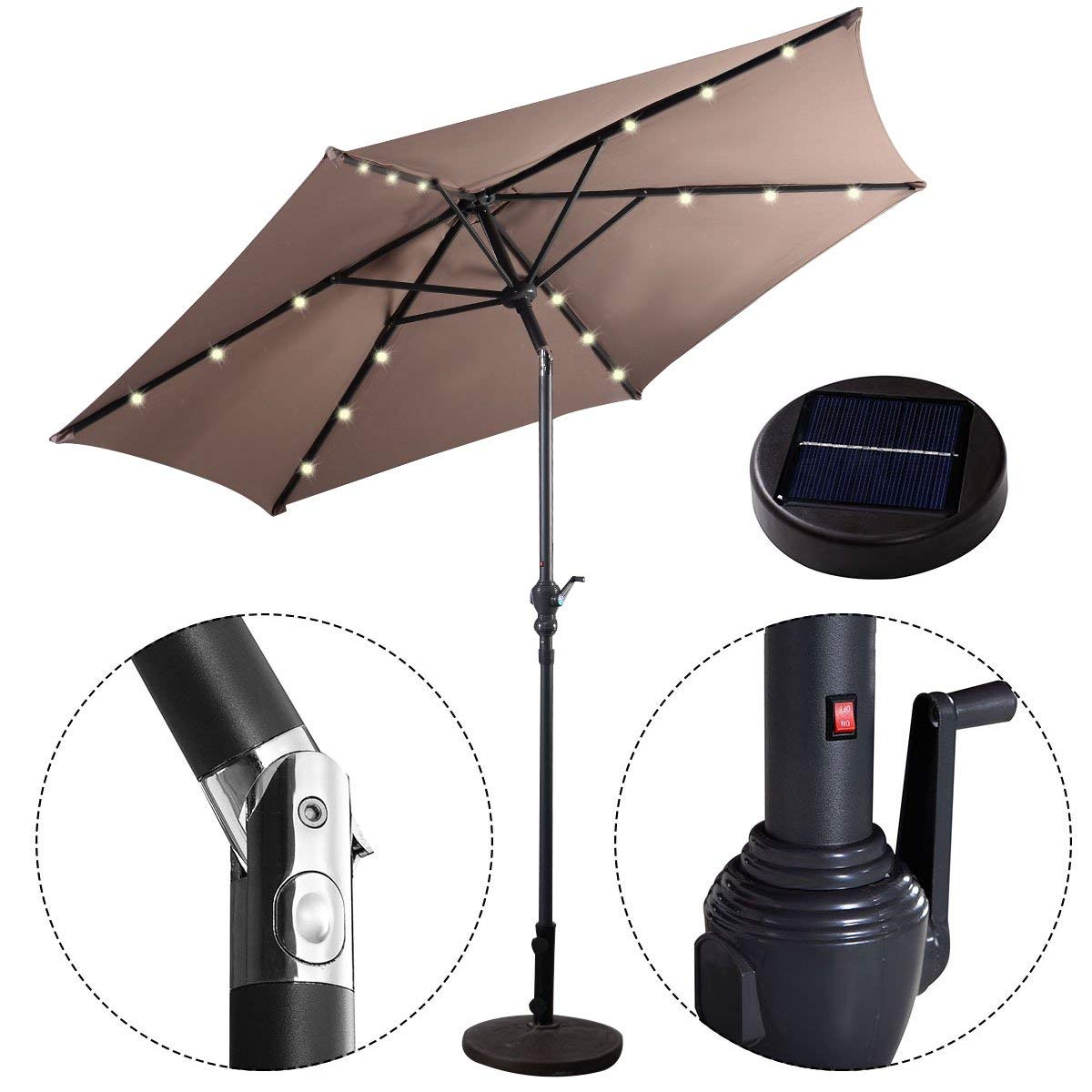 Costway Sonnenschirm mit Solar- LED-Beleuchtung Ampelschirm Gartenschirm Kurbelschirm 2,7M-braun€0,00