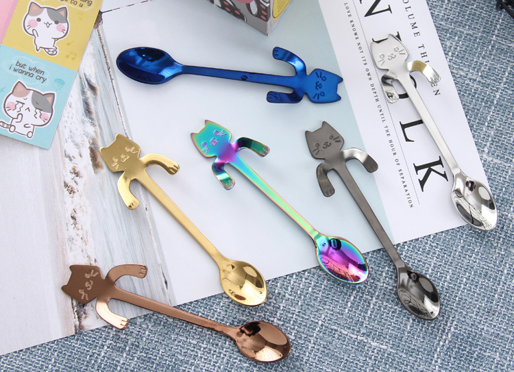 Grenzüberschreitender 304-Edelstahllöffel, Cartoon-Katzengriff, hängender Kaffeelöffel
