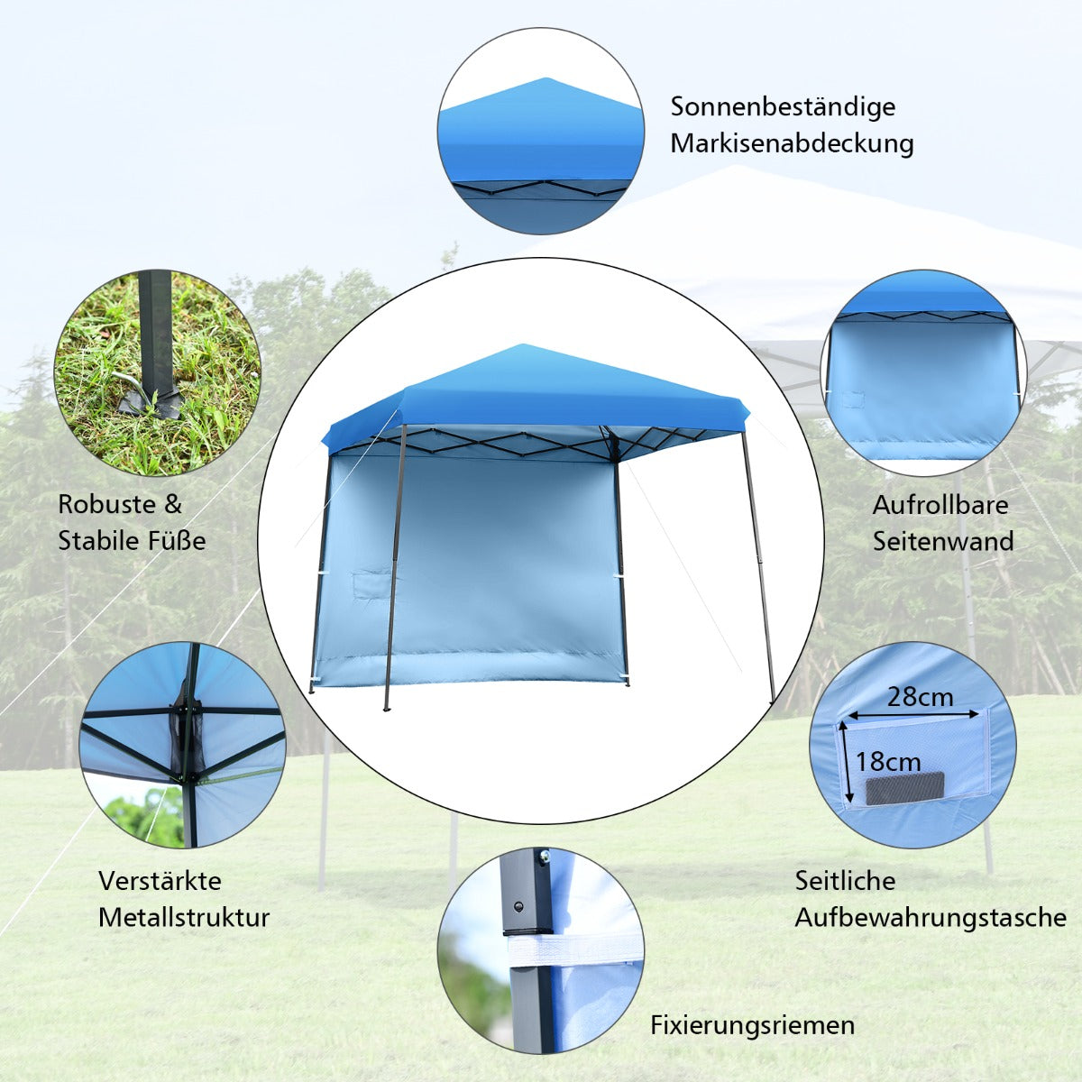 Faltpavillon Gartenpavillon mit abnehmbarer Seitenwand Partyzelt höhenverstellbar Blau€136,99