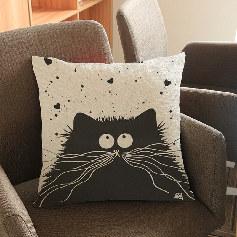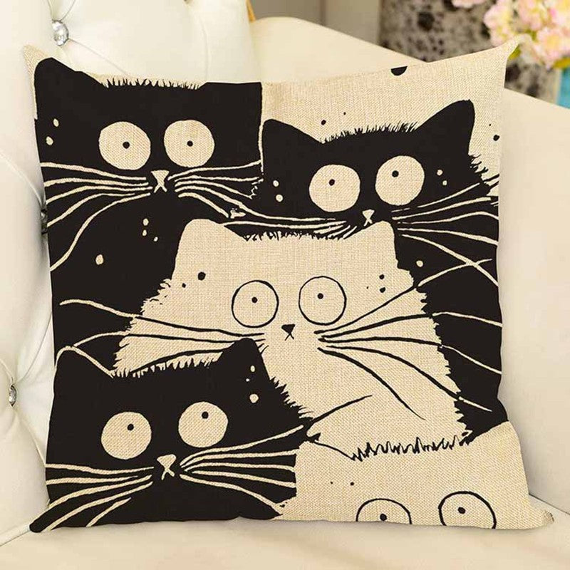 Cat Pillow Cartoon Images Linen Cotton Blend Cushion Cover Pillowcases